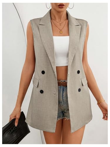 Why Choose MakeMeChic Women's Lapel Button Front Sleeveless Work Office Dressy Blazer Jacket?