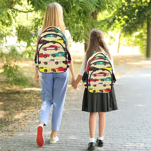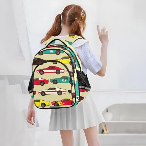 trending ! Vintage Car Racecar Backpack for School Book Bag Laptop Tablet Backpack Work Travel Computer Bag with Reflective Stripes