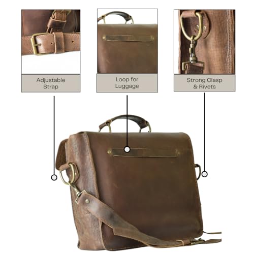 More information about Handmade Brown Leather Briefcase by World Orphans - Full Grain Genuine Leather with Pullup