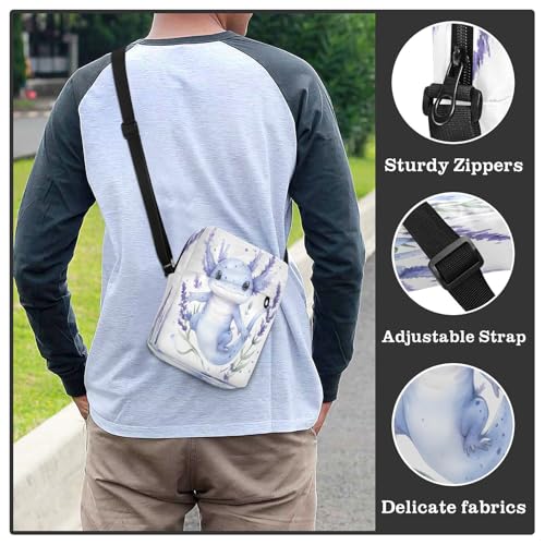 trending ! Crossbody Bag Cute Axolotl Lavender Messenger Bag for Women Men Purse Shoulder Bag Satchel Bag with Adjustable Strap 214B8879