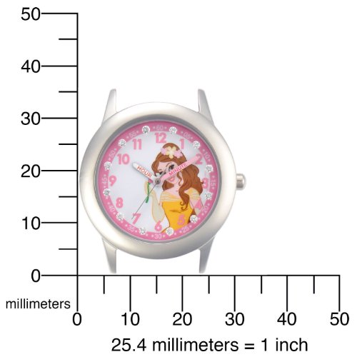 trending ! Disney Kids' W001039 Belle Glitz Stainless Steel Printed Strap Watch