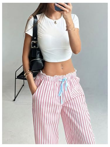 This Milumia Women's Striped Lace Trim Drawstring Waist Wide Leg Baggy Long Pants combines elegant design with practical functionality. Every detail has been carefully considered to ensure you get the premier possible experience. The top-grade construction means this product will serve you well for years to come.