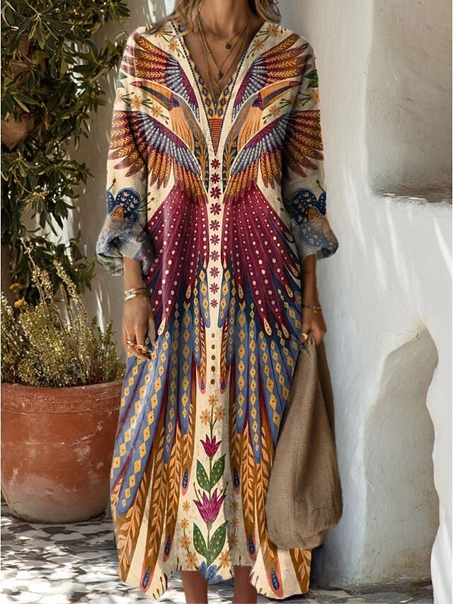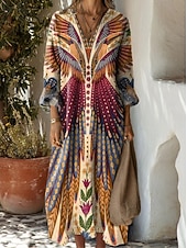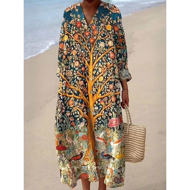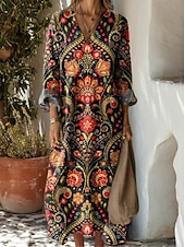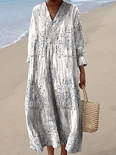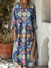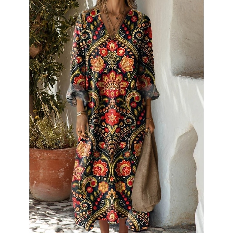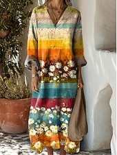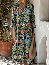 More information about Women's Maxi Dress Casual Dress contemporary Casual Vacation Daily Regular Fit Floral Long Sleeve V Neck Navy Blue Blue Orange Brown Summer