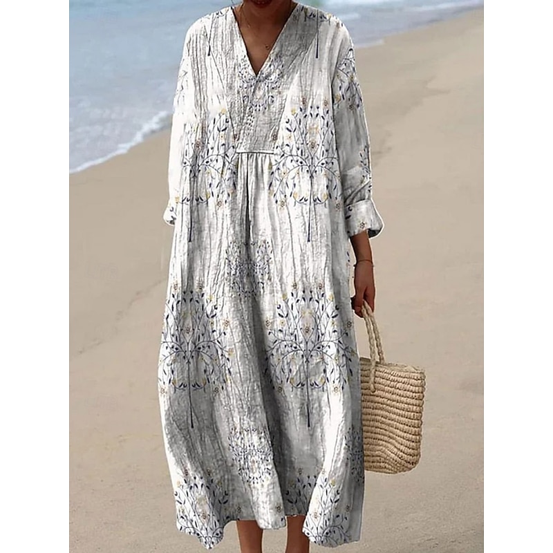 trending ! Women's Maxi Dress Casual Dress sophisticated Casual Vacation Daily Regular Fit Floral Long Sleeve V Neck Navy Blue Blue Orange Brown Summer
