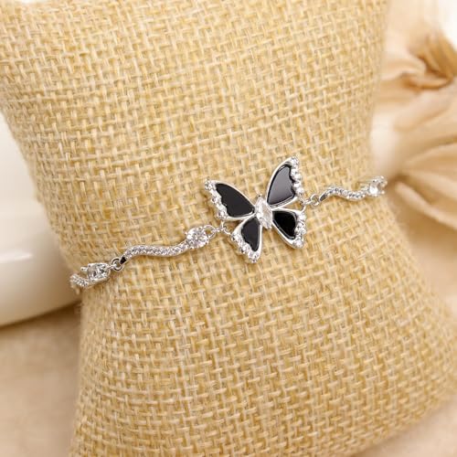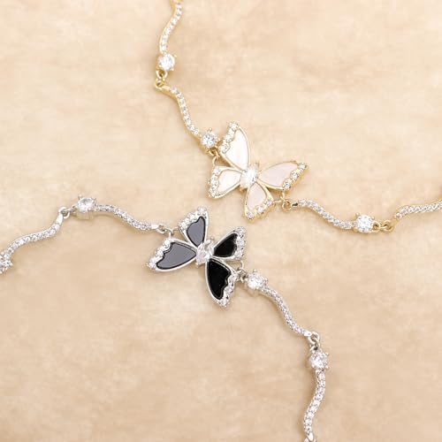 Material: Stainless SteelMetal type: Stainless SteelGem type: No GemstoneItem type name: BraceletsDelicate butterfly bracelet, featuring a distinctive butterfly design, with sparkling rhinestone and cubic zircon, adding a touch of elegance to your outfit, suitable for daily wear and special occasions.Trendy style, versatile, everyday, perfect for Birthday, Wedding, Anniversary, Valentine's Day, Thanksgiving, Motherβs Day, Graduation, Christmas, Holiday Festival, etc.Hypoallergenic, lead free, nickel free, non-tarnished, durable, comfortable to wear, complement any outfit effortlessly.Great for gifting your co-workers, best friends, bff, sister, gf, lover, wife, partner, mother, daughters, etc.Proper storage and regular cleaning can help the jewelry stay shiny, and long-lasting. Perfect for everyday use. supreme materials and excellent craftsmanship ensure long-lasting durability.