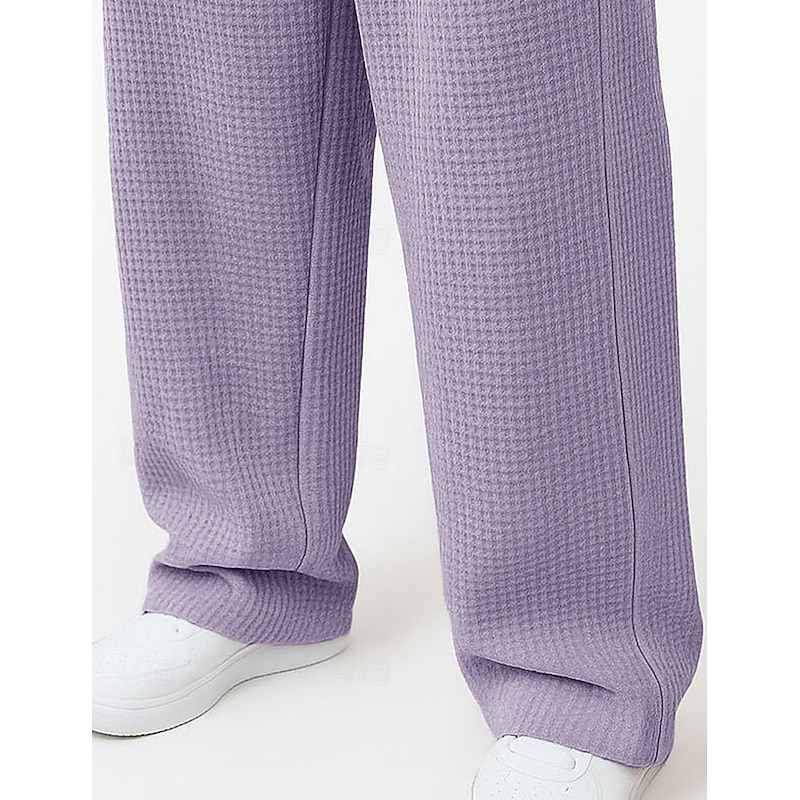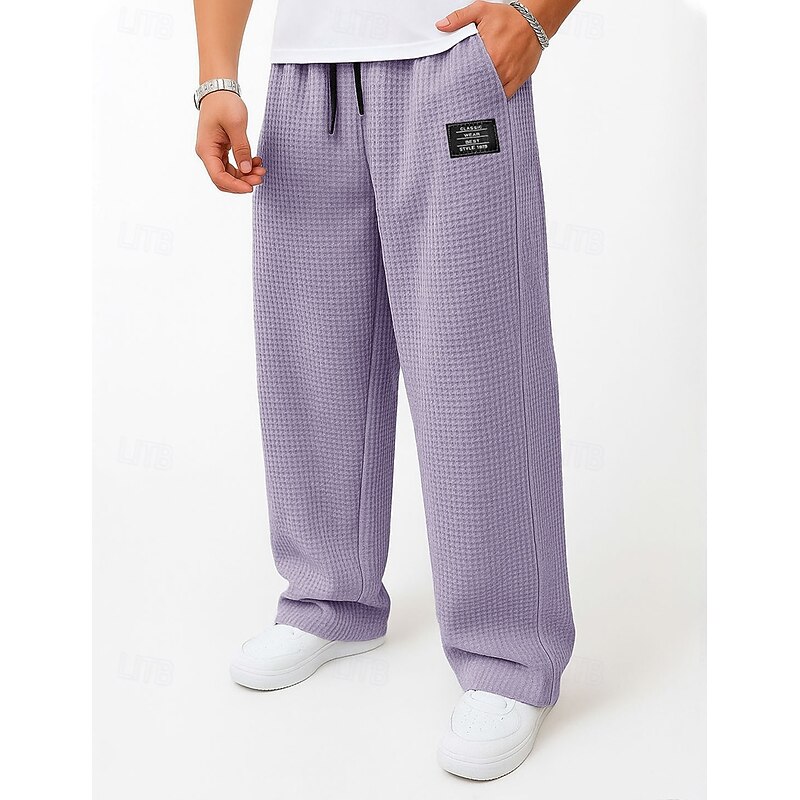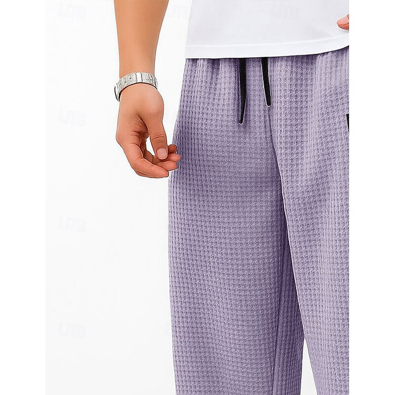 More information about Men's Waffle Sweatpants Trousers Baggy Pants Open Bottom Sweatpants Drawstring Solid Color Comfort Full Length Outdoor Daily Streetwear Fashion timeless Style Black Navy Blue Inelastic