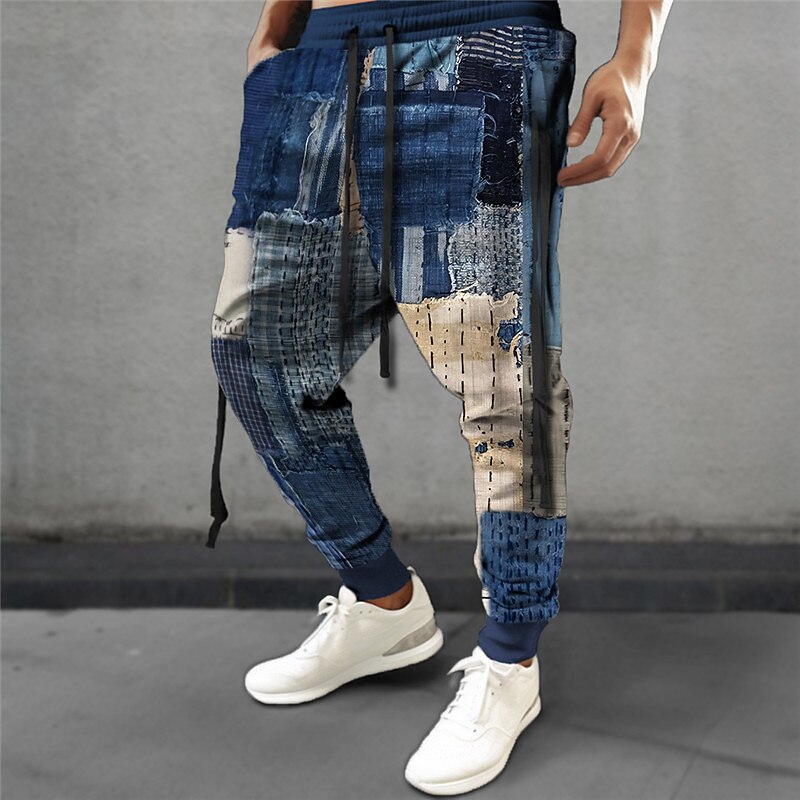 Plaid Geometry Casual Men's 3D Print Sweatpants Joggers Pants Trousers Outdoor Street Casual Daily Polyester Navy Blue Royal Blue Blue S M L Mid Waist Elasticity Pants