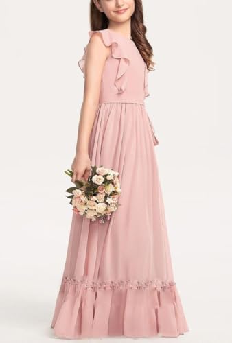 More information about Chiffon Junior Bridesmaid Dress Flower Girl Dresses for Wedding Ruffles Sleeveless Pageant Dress for Teen Girls