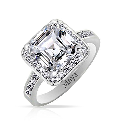 Ring size: 6Item width: 10 millimetersMaterial: MetalMetal type: Rhodium-plated-silverGem type: Cubic ZirconiaHALO STYLE - Enchant your beloved with this radiantly sublime sterling silver fashion engagement ring featuring a flawlessly lustrous Asscher cut square cz stone accented with sparkling channel cut pave czs. Size 6 ringMaterial: .925 Sterling Silver Rhodium Plating Tarnish Free, Cubic Zirconia. Rhodium plating enhance shine and durability. Each piece is stamped .925 guarantees the quality and craftmanship. HYPOALLERGENIC - Lead-Free Nickle-free. Measure: 2.mm Band Width, Stone: 8MM Weight: Approx: 5 gramsAffordable Alterative to Diamonds-Buy Cubic Zirconia: Show your love for the Earth and your sweetheart by choosing cubic zirconia jewelry gifts. Lab created CZ reduces social and destructive environmental impact caused by the mining of diamonds. CZ Jewelry is virtually flawless and only a jeweler can tell the difference.Thoughtful Gifts for Every Occasion: Whether its Mothers Day, an Anniversary, Wedding, Birthday, Holiday, Stocking Stuffer, Christmas, Valentines Day, or Graduation, our exquisite jewelry is the ideal present. Ideal for expressing your love to your Sister, Mother, Grandmother, Daughter, Wife, Girlfriend, Aunt, Mum, Mommy, Grandma, or even for yourself. Its the ultimate gift for anyone special in your life.USA-Based Company with 30-Day After-Sale Service: We take pride in our craftsmanship and product quality. Rest assured, if you receive an item with manufacturing defects, weve got you covered. Click on the link to contact our customer service. Perfect for everyday use. superior materials and excellent craftsmanship ensure long-lasting durability.