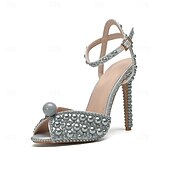 More information about Women's Pearl-Embellished Stiletto Heels - Elegant Bridal Wedding Shoes with Ankle Strap and Open Toe Design