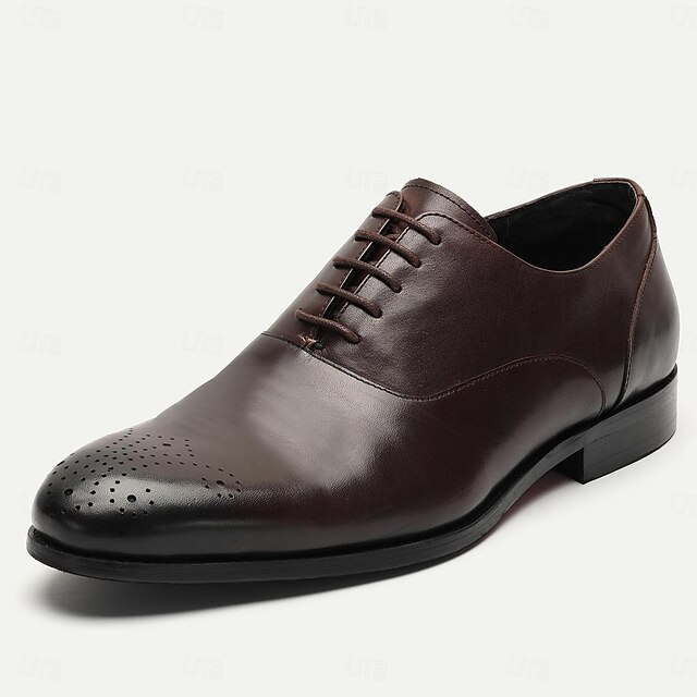 Highlights [Fabric] Crafted from high-quality Italian full-grain cowhide leather, these Oxford shoes offer a luxurious feel and a sophisticated, polished appearance. The leather's smooth finish and rich brown color create a timeless elegance suitable for any formal event. [Fit] Featuring a classic, streamlined silhouette, these shoes boast a contemporary round toe design that provides a sleek and updated profile, ideal for professional and formal occasions. The traditional lace-up closure ensures a snug and adjustable fit, adding to the overall comfort and style. [Design Highlights] The shoes feature a refined perforated design on the toe, which adds a subtle yet decorative detail. The closed lacing system offers a clean and professional look, while the cushioned insole and leather lining ensure comfort during extended wear. The durable rubber outsole provides excellent traction and longevity. [Usage Occasions] Perfect for business meetings, weddings, formal dinners, or any special occasion where a polished and professional appearance is desired. These shoes seamlessly blend timeless style with high-end craftsmanship, making them the ideal choice for a variety of formal settings. [Size Range] Available in sizes US6 to US13, these Oxford shoes cater to a wide range of foot sizes, ensuring a perfect fit for every gentleman. Perfect for everyday use. supreme materials and excellent craftsmanship ensure long-lasting durability.