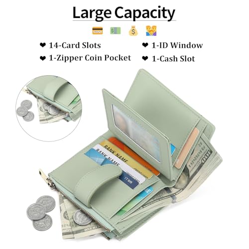 Brand: GAEKEAOColor: Type 1 GreenMaterial: Faux LeatherStyle: ClassicPattern: SolidSmall But Roomy: With 14 Rfid-block card slots, 1 ID window, 1 side zipper pocket for the coin and keys, and 2 full-length bill compartments, this small wallet for women can meet all your daily demandsPremium Quality: Women's wallets are made of PU leather with a nice and smooth texture, really soft & comfortable to the touch. Size: 5.51 x 4.13 x 1.38 inches, you can easily carry it in hand or put it in a bagRfid Blocking Wallet: Every card slot in our rfid blocking wallets is equipped with advanced rfid blocking lining, which will protect the valuable information stored on rfid chips from unauthorized scans. Tested & Approved by Independent Test Lab, tested from 10MHz to 3000MHz, including cards' 13.56 MHzIdeal Present - Leather Wallets for Women: The simple, durable, and fashionable women's small wallet is packaged in an exquisite present box, which makes them perfect presents for any occasionKind Tips: GAEKEAO provides our customers with prompt responses, aiming to solve any issues when you are using women's wallets. If there is any question or concern, please feel to contact us and we will get in you within 24 hours Perfect for everyday use. supreme materials and excellent craftsmanship ensure long-lasting durability.
