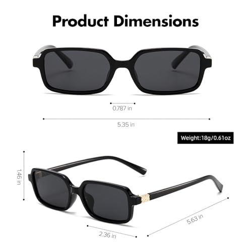 EASYHAUTE Rectangle Sunglasses for Women, 90s Retro Miu-Inspired Sun Glasses with UV 400, Vintage Rectangular Lenses