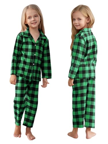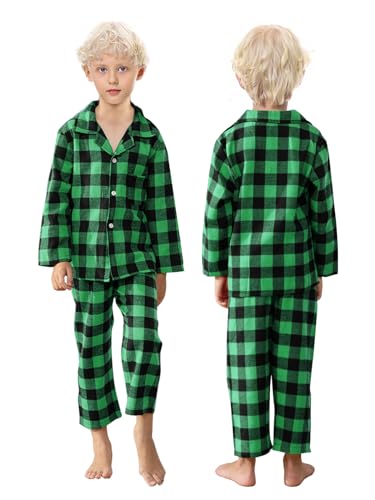 Schbbbta Pajamas for Mens, Flannel Black Green Family Plaid Pajamas Cotton 2-Piece Button Down Sleepwear Pjs Sets, Black Green, US L