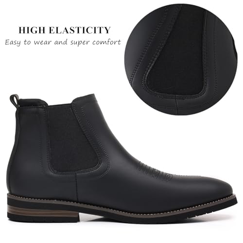 Fabric type: Synthetic leatherSole material: RubberShaft height: AnkleOuter material: Faux Leather【Classic Western Style】: DADAWEN square toe cowboy boots for men combines the timeless charm of cowboy boots with the refined and fashionable design of chelsea boots. It sets you apart in the fashion scene and adds a unique touch to your stylish outfits【Slip-On Convenience】: The flexible structure of the shoes allows you to move freely and comfortably. The finely stitched elastic side panels, crafted by skilled artisans, ensure long-lasting elasticity without deformation. The ankle-high design of these men boots allows for easy on and off while maintaining flexibility.【Comfort Interior Lining】: Superior men's boots designed for weekdays to weekends featuring a fully lined supple breathable interior, These men's boots are equipped with a latex insole,providing excellent cushioning and a perfect fit.【Non-slip & Sturdy Outsoles】: Durable TPR outsole delivers superior slip resistance with lightweight stability. Lightweight yet sturdy construction balances stability and comfort for gardening, farm chores, or weekend adventures.【Versatile for Any Occasion】: These chelsea boots boast a classic design that effortlessly complements formal or casual attire,exuding an elegant and stylish look. Whether it's a wedding, office, party, gardens, workshops, factories, country music festivals, markets, or festivals, their elegant appearance and refined temperament will make you stand out in various occasions. Perfect for everyday use. superior materials and excellent craftsmanship ensure long-lasting durability.