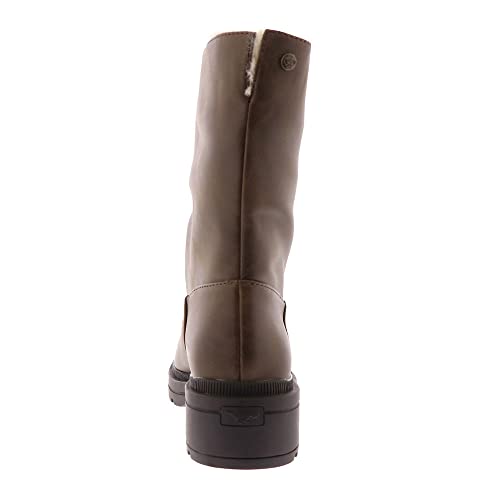 - Rocket Dog women's boot|Fold over shearling lining|Faux upper|Elastic gore for effortless entry|Pull tab in back|Contrast detailing at sides|Flexible and tough lug sole construction|Heel height 2.16 inches|Platform height 1.18 inches|Shaft height 7.90 inches|Leg circumference 12.99 inches|Plush Foam Comfort Insole